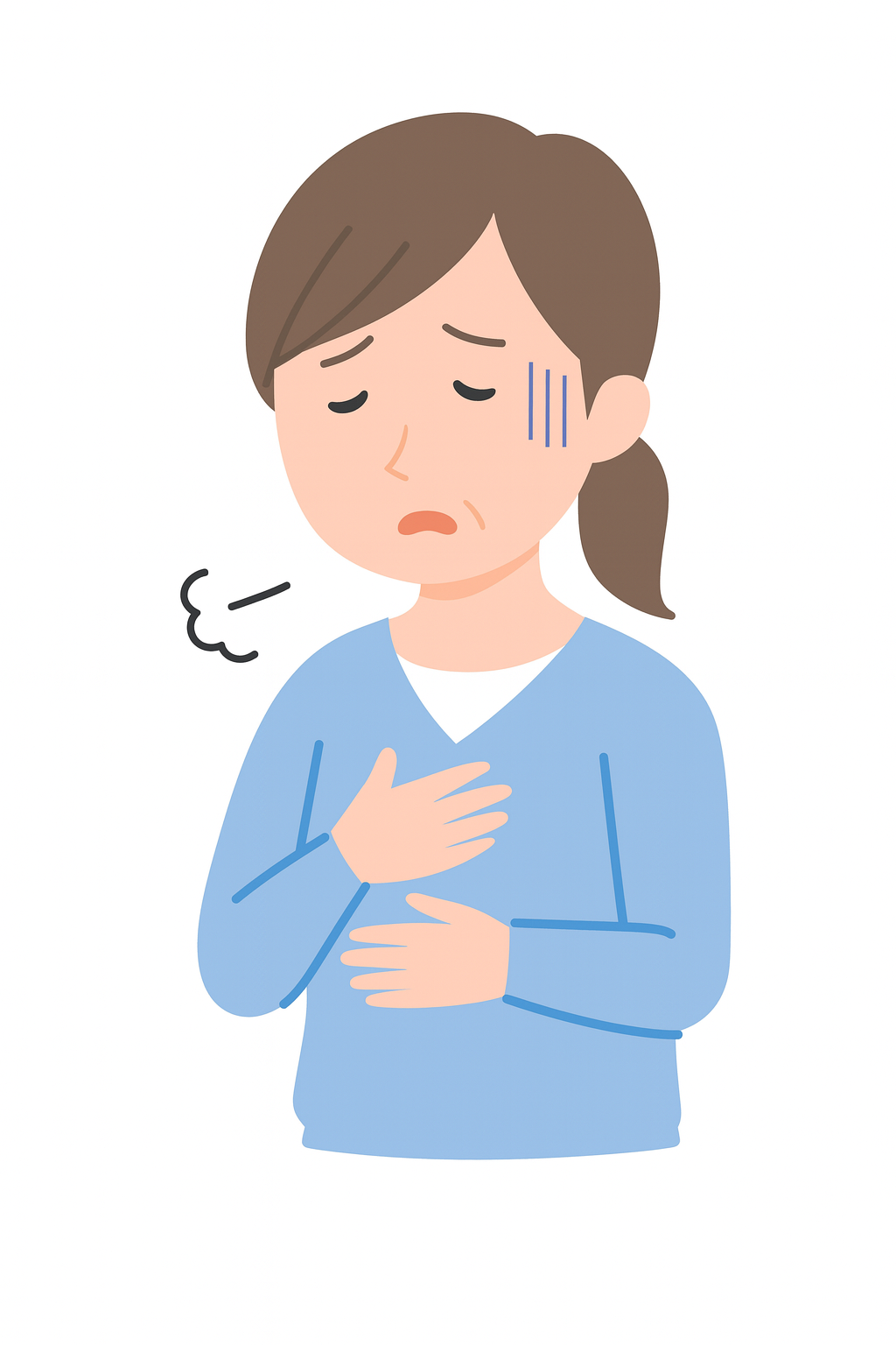 - 心臓の正常な拍動に対する意識が鋭敏になっているだけの場合もあり、特に運動、発熱性疾患、不安などで心拍数が上昇している場合に多いです。多くの不整脈は、しばしば重篤な基礎疾患がない状態で自然に発生します。しかし重篤な心疾患によって不整脈が引き起こされることがあります。重篤な心臓性の動悸の原因には、心筋虚血(心筋梗塞)、心筋症、先天性心疾患、心臓弁膜症、伝導系障害などがあります。心臓以外の疾患では甲状腺中毒症、褐色細胞腫によって動悸が生じることがあります。精神疾患は考慮すべき疾患です。うつ病、パニック障害、全般性不安障害、身体症状症は動悸との関連することがあります。一部の薬物(カフェイン、アルコール、ニコチン、交感神経刺激薬(喘息の薬)、精神病薬)は、しばしば動悸を発生させます。貧血、低酸素血症、循環血液量減少(脱水など)や電解質異常などは,動悸の誘発または増悪因子となります。